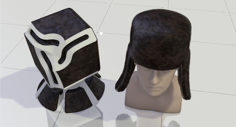 If you cut the geometry of the cap in two or more pieces, you’ll see that it consists of several layers. The lowest of them is opaque, it acts as a background. Other layers produce a parallax-like effect, that looks a lot like real fur.