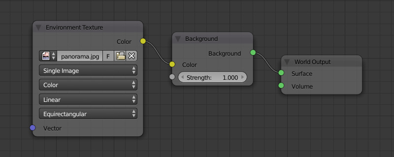 Для задания цвета фона можно также использовать ноду Environment Texture; поддерживаются типы наложения Equirectangular и Mirror Ball.